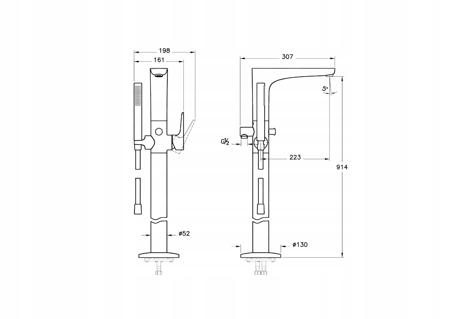 Montaż: podłogowy – idealna do wanien wolnostojących