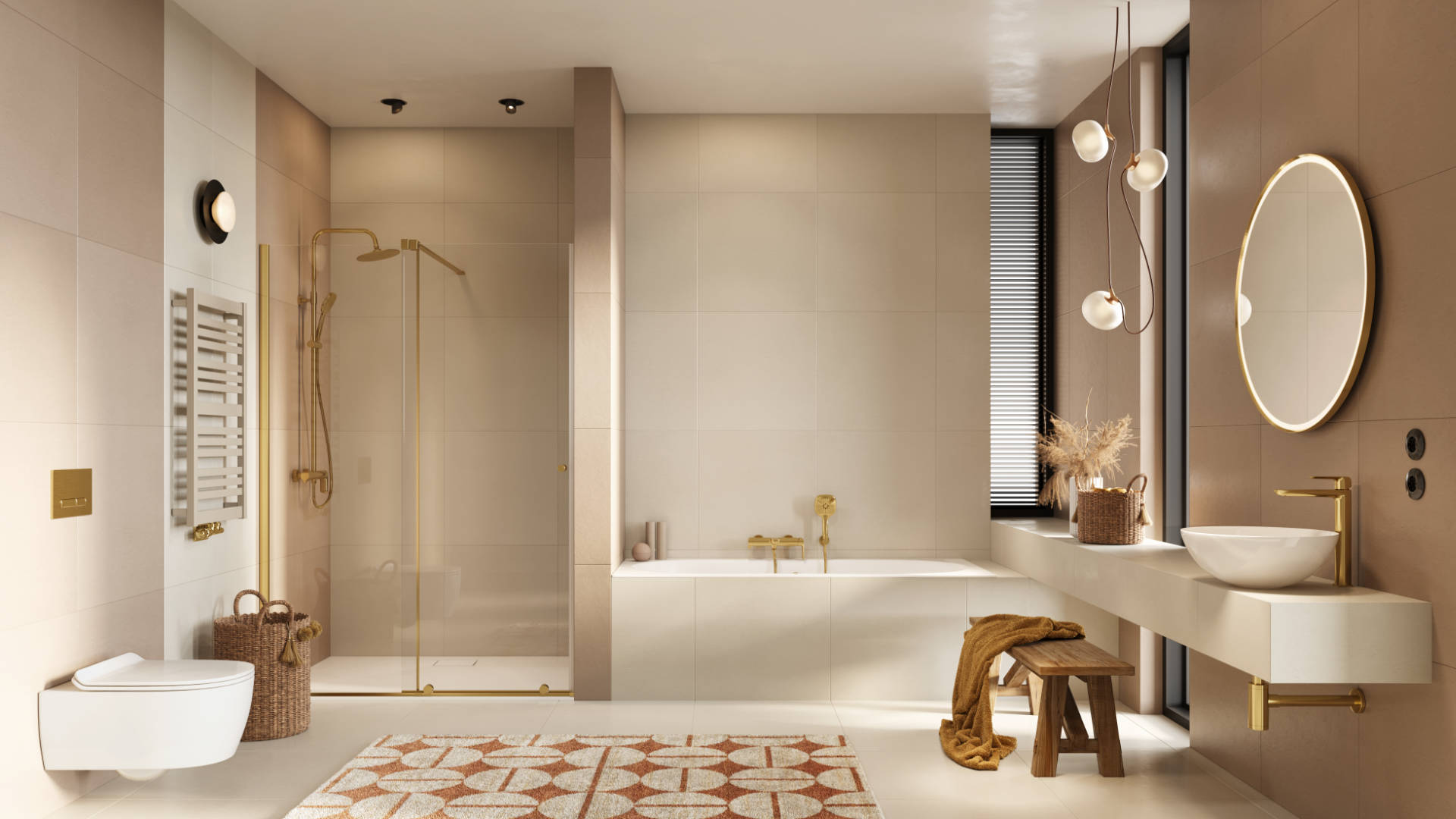 Clever 2.0 bateria umywalkowa stojąca wysoka, złoty szczotkowany