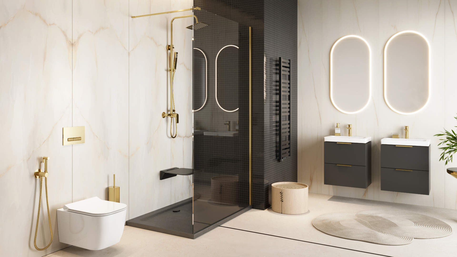 Glad Rain zestaw prysznicowy ścienny z deszczownicą 25 cm, złoty połysk
