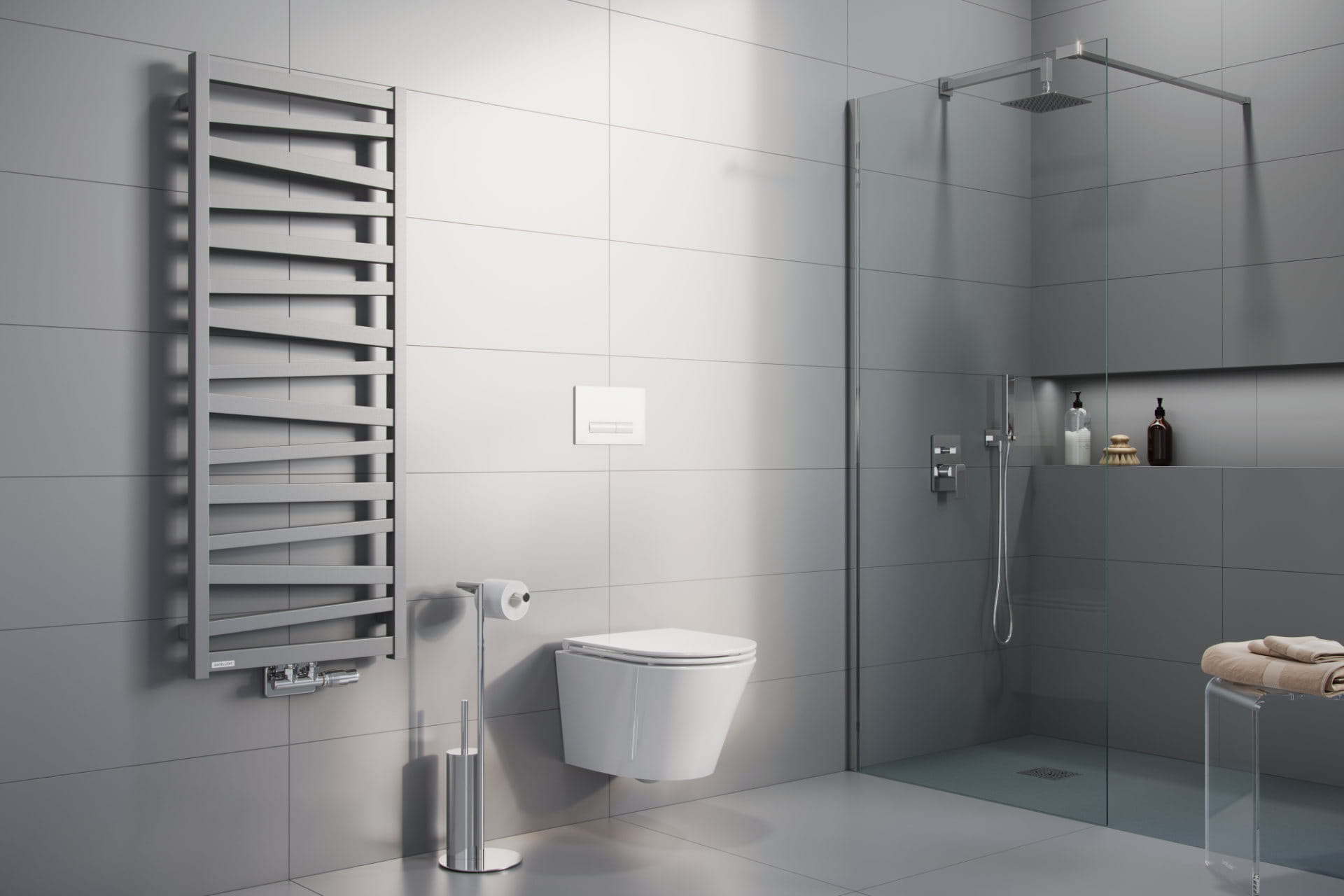 Wychodząc naprzeciw oczekiwaniom naszych odbiorców, w modelu tym zdecydowaliśmy się połączyć oryginalny, dekoracyjny design niesymetrycznie ułożonych profili, pozostawiając jednocześnie dwa profile ułożone poziomo. Dzięki temu grzejnik łączy nowoczesny wygląd z funkcjami użytkowymi, np. możliwością rozwieszenia na nim ręcznika w poziomie.