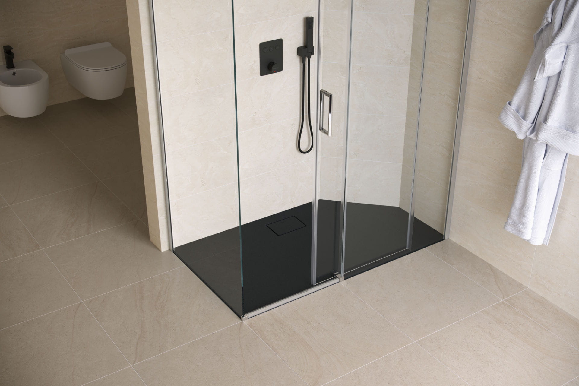 Brodziki serii Lavano organizują strefę prysznica, zabezpieczając posadzkę przed wodą i zapewniając prawidłowy odpływ wody do syfonu brodzikowego.
