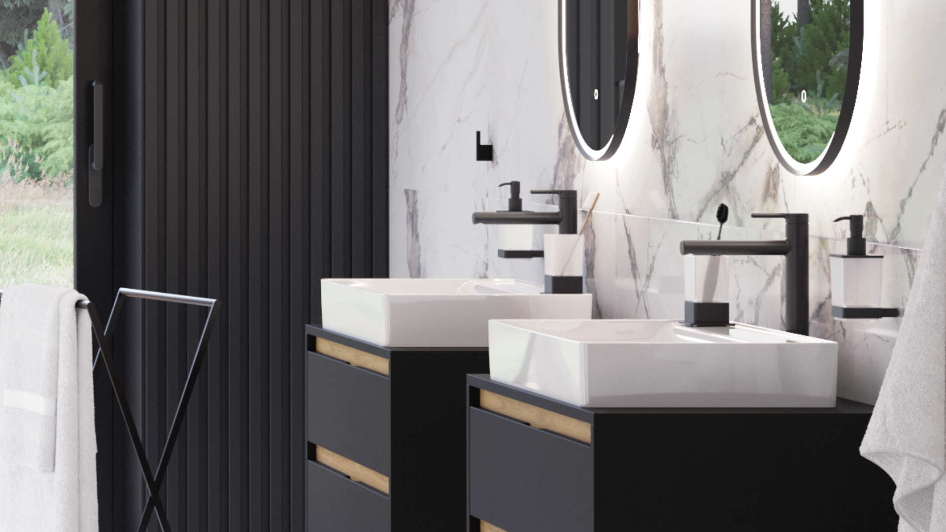 PI bateria umywalkowa stojąca wysoka, czarny mat