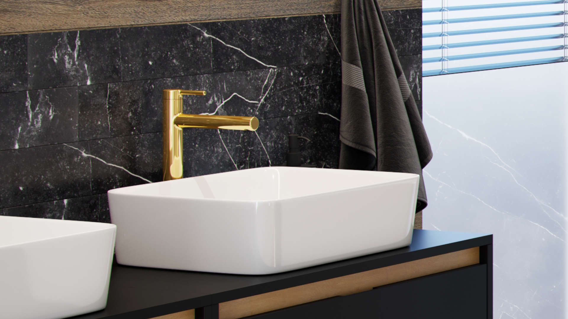 Bateria umywalkowa wysoka posiada wylewkę o zasięgu 174mm i wysokości 290 mm. Dzięki temu z powodzeniem może być stosowana do umywalek nablatowych bez otworu na baterię. Korpus umywalki wykonany jest z jednego odlewu. Posiada wbudowane: głowicę Kerox oraz perlator Neoperl Slim. Jej idealnym uzupełnieniem będą korki z serii Classic lub Design.