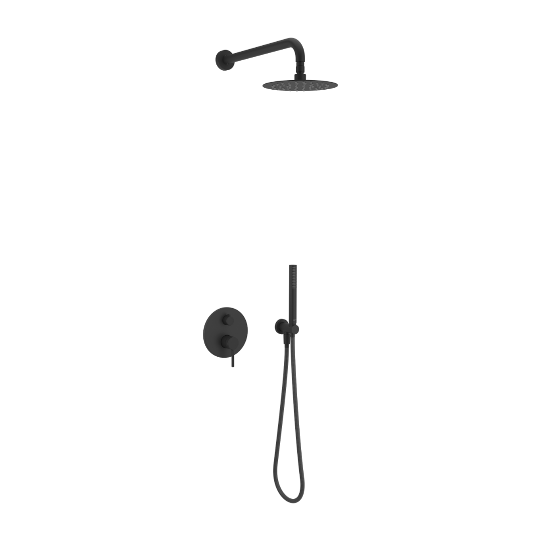 PI zestaw prysznicowo-wannowy podtynkowy 2 funkcyjny z deszczownicą 25 cm, czarny mat