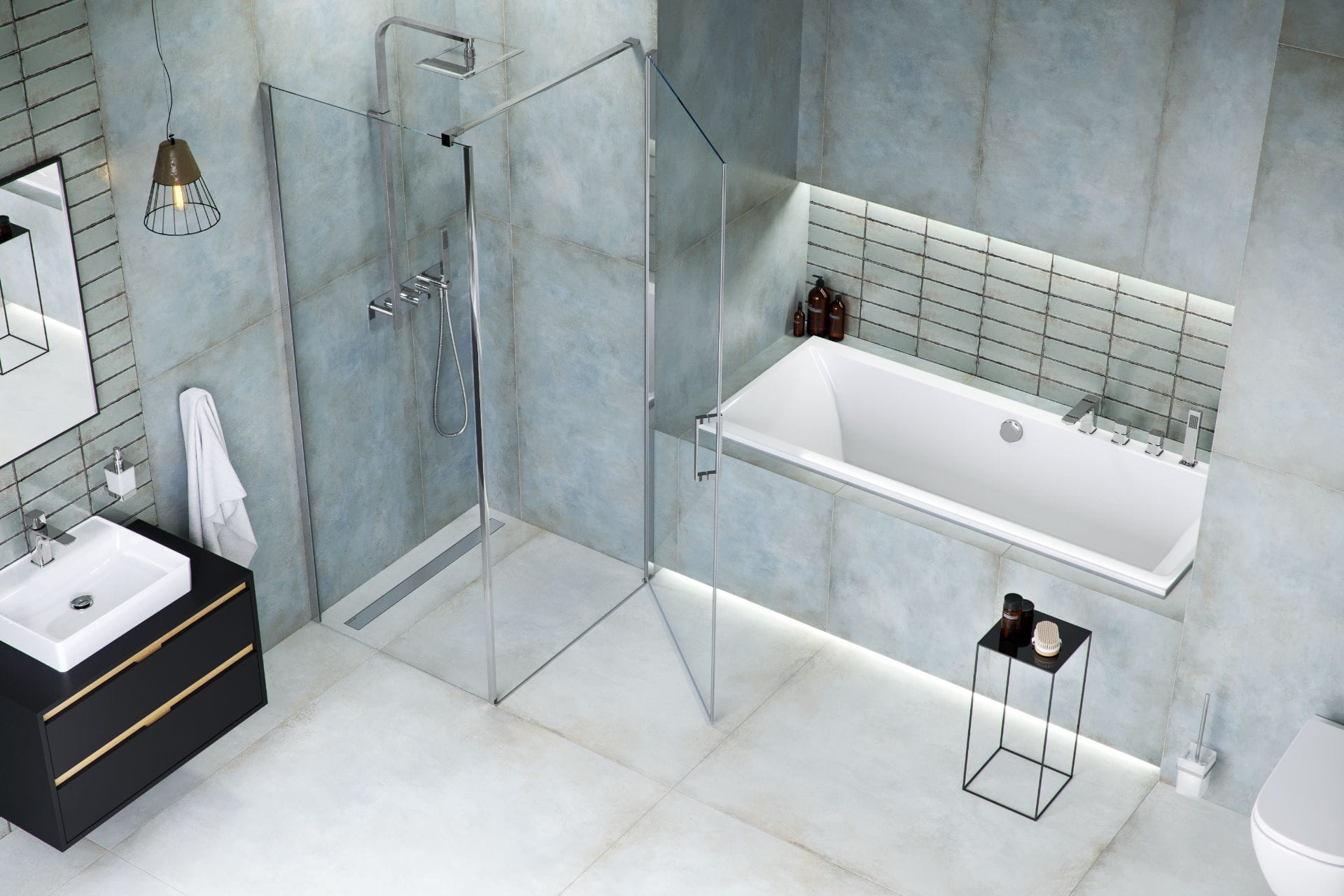 Dzięki niskiemu rantowi, zaledwie 18mm, wanna zabudowana płytkami wygląda efektownie i delikatnie. Uzyskany minimalizm to także podniesiona użyteczność - na takim rancie można z powodzeniem instalować baterie nawannowe bez dodatkowego wzmocnienia.