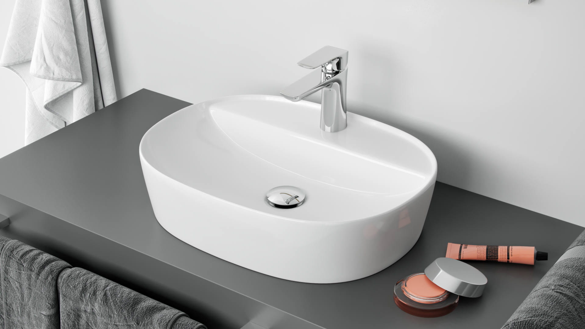 Ronity 50S ceramiczna umywalka nablatowa wyróżniająca się nowoczesnym wyglądem. Ronity 50S to umywalka bez przelewu, z otworem na baterię i miejscem odkładczym. Umywalka wykonana jest z najwyższej jakości ceramiki z dbałością o szczegóły. Rekomendujemy zastosowanie niskiej baterii umywalkowej z szerokiej oferty Excellent.