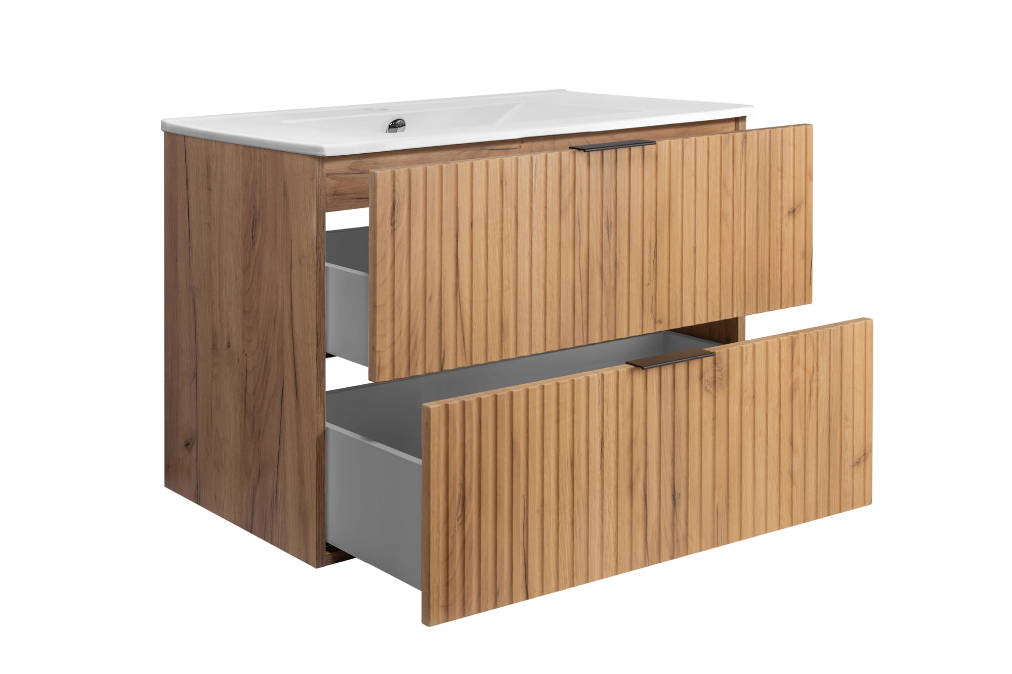 Szafka pod Umywalkę 80 cm Łazienkowa Dąb Craft Złoty Mat Ryflowana Nowoczesna FLOW