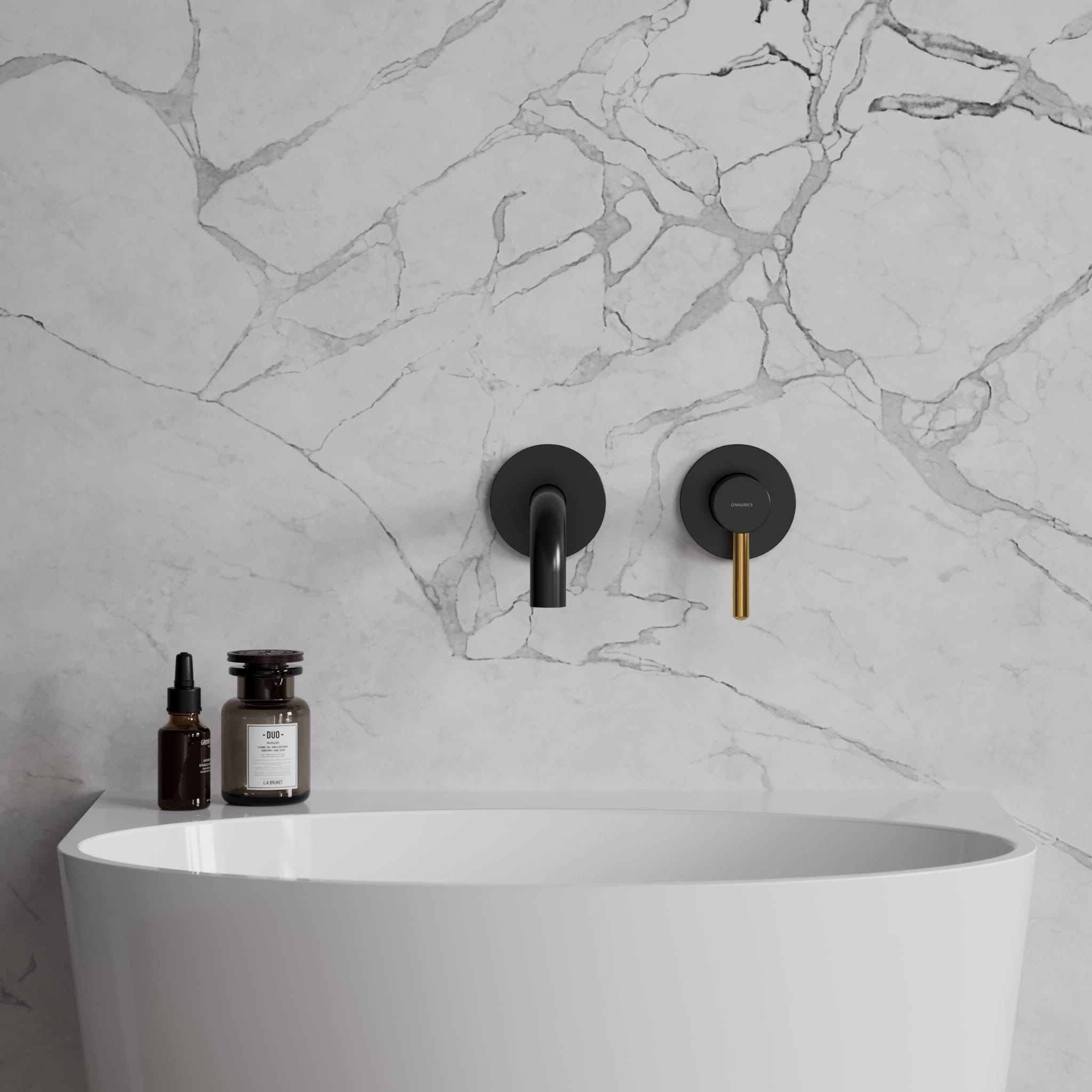 Y bateria umywalkowa podtynkowa, czarny półmat/złoty połysk
