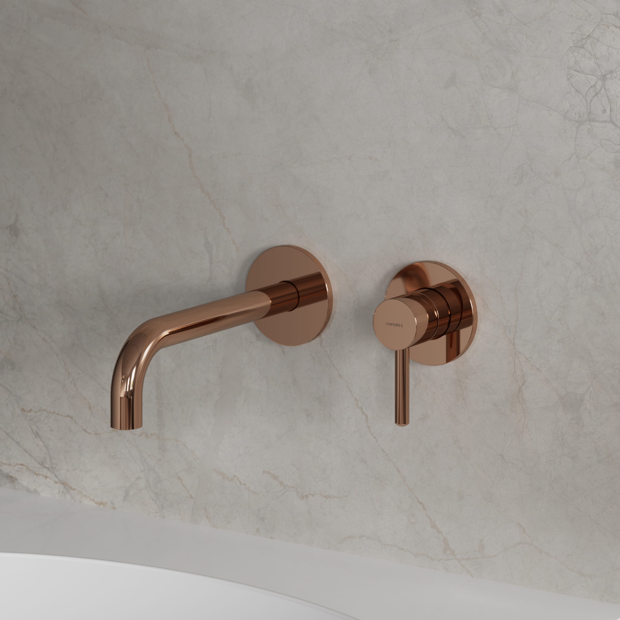 Y bateria umywalkowa podtynkowa z długą wylewką, miedź połysk