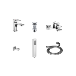 Zestaw Keria Set 01 to idealne rozwiązanie do kompleksowego wyposażenia łazienki. Wysokiej jakości armatura w eleganckim chromowanym wykończeniu zapewnia stylowy wygląd i komfort użytkowania. W zestawie znajdują się elementy niezbędne do stworzenia funkcjonalnej i estetycznej przestrzeni.